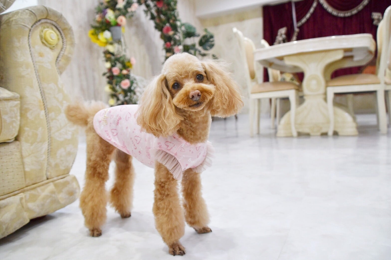 母の日に送る愛情が感じられるお花。ピンクのカーネーションの花言葉は「美しい仕草」や「感謝」だそうです。少しでも愛犬ちゃんのスタイルが良く着やすいお洋服を、そしてAndyeを手にとってくださる皆さまに感謝の気持ちを、、
